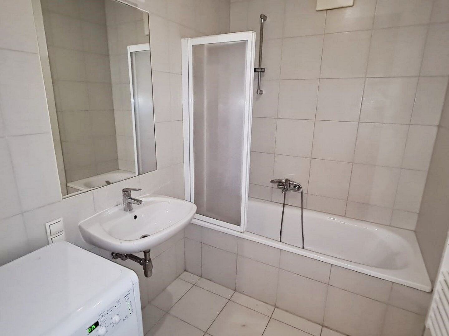 + Badezimmer mit Badewanne, WC, Waschtisch und Waschmaschinenanschluss
