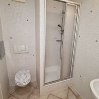 + Badezimmer mit Dusche, Waschtisch, WC und Waschmaschinenanschluss