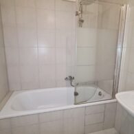 + Badezimmer mit Badewanne, Waschtisch, WC und Waschmaschinenanschluss