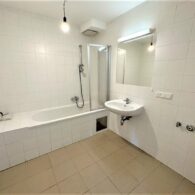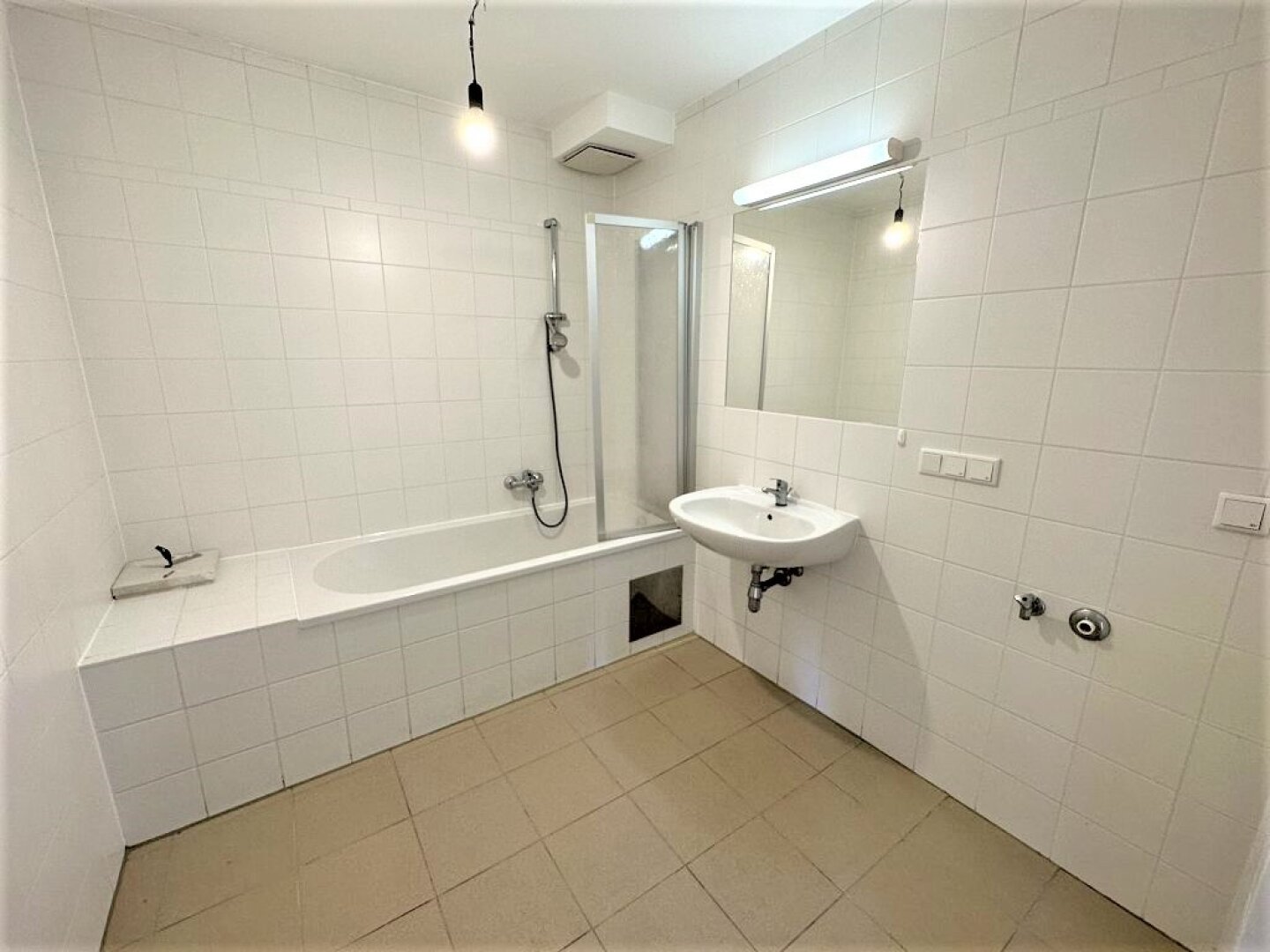 + Badezimmer mit Badewanne, Waschtisch und Waschmaschinenanschluss