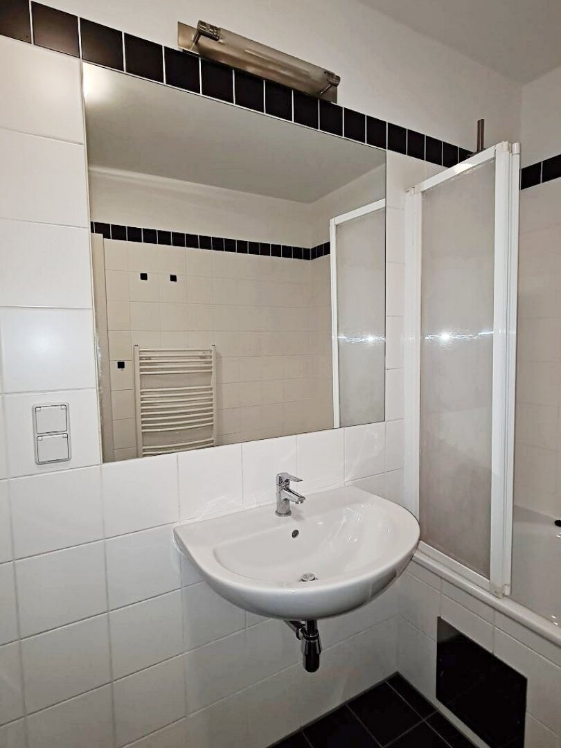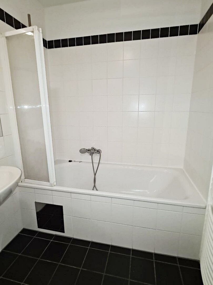 + Bad mit Badewanne, Waschtisch und Waschmaschinenanschluss