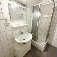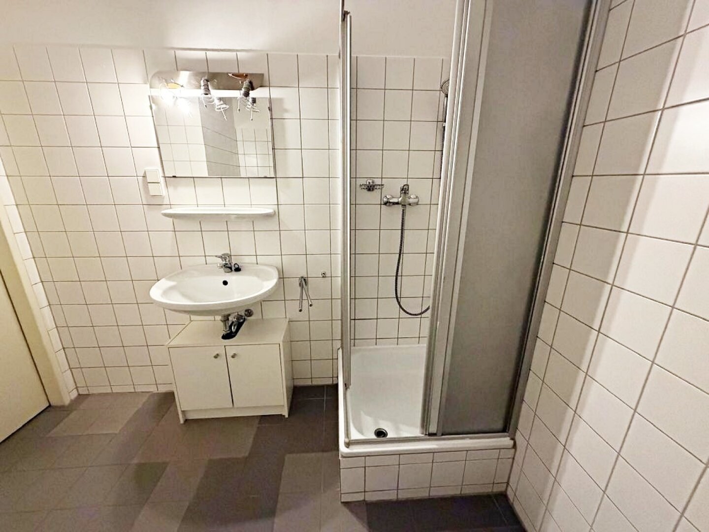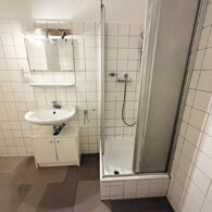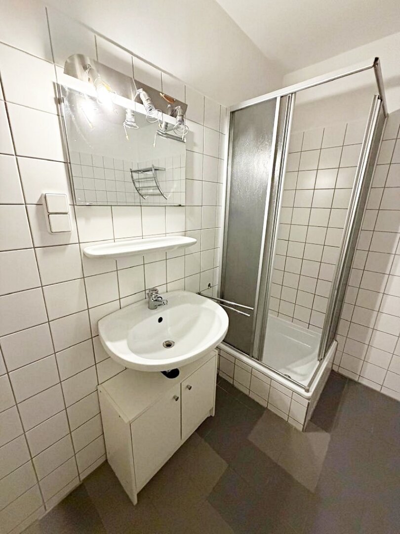 + Badezimmer mit Dusche, Waschtisch, WC und Waschmaschinenanschluss