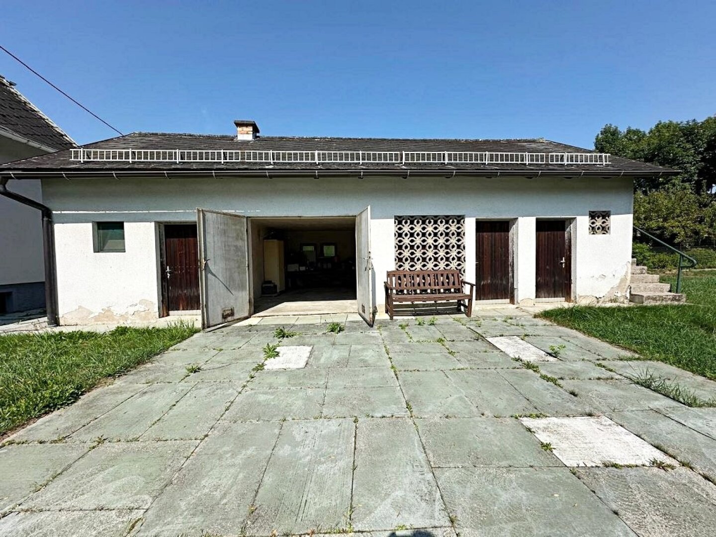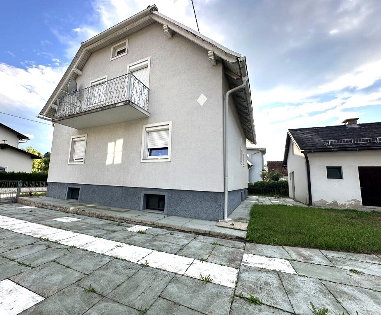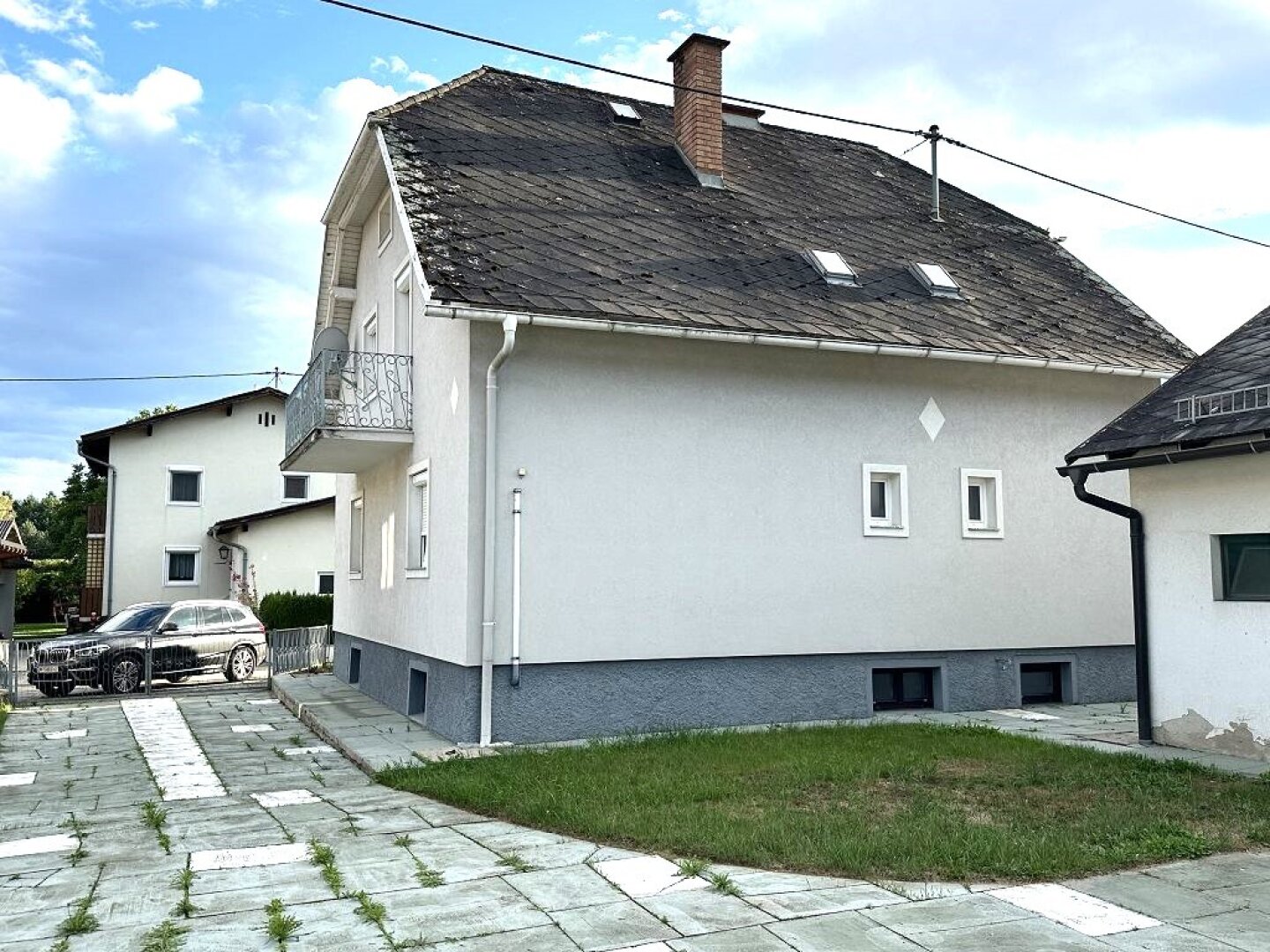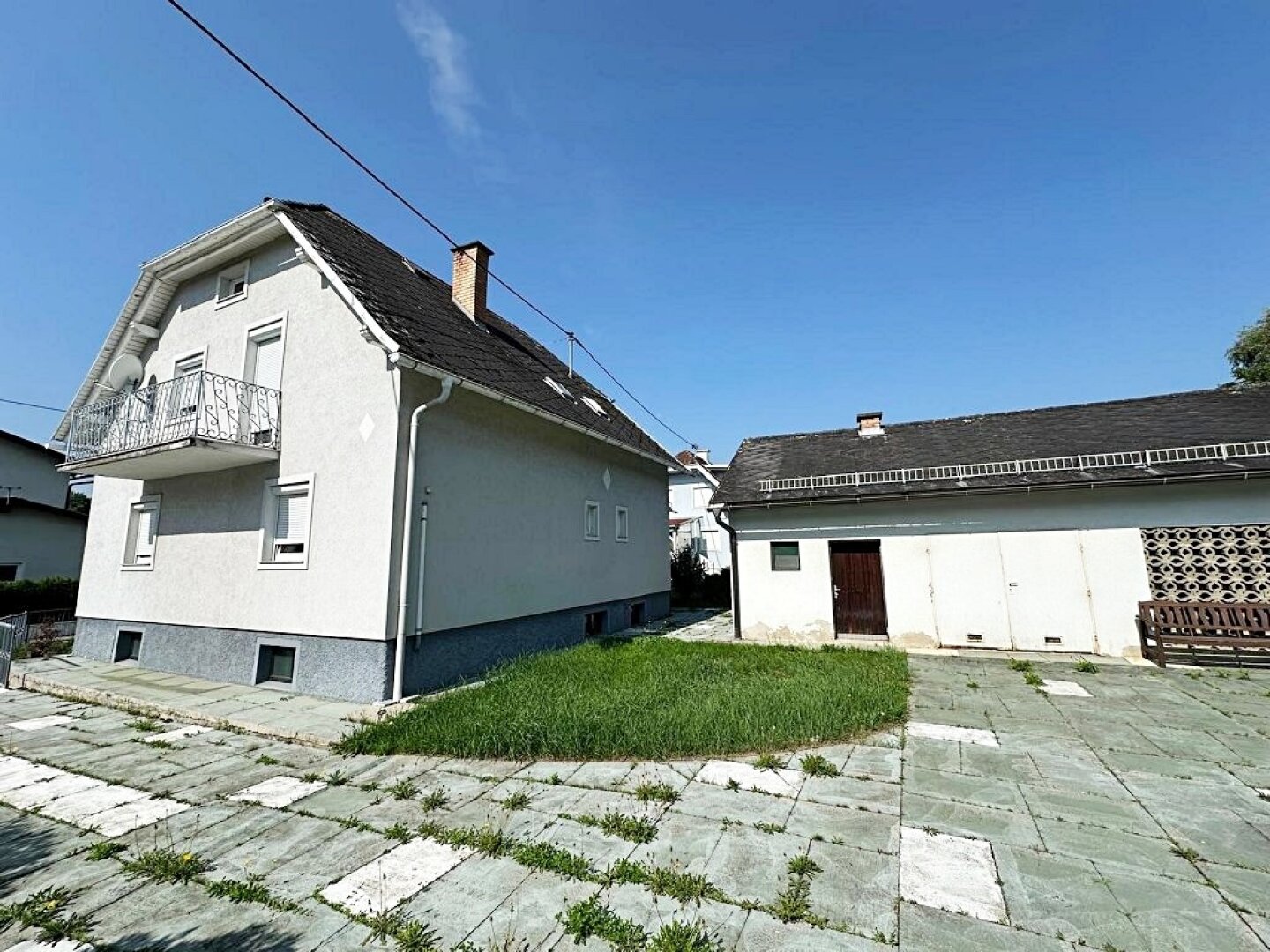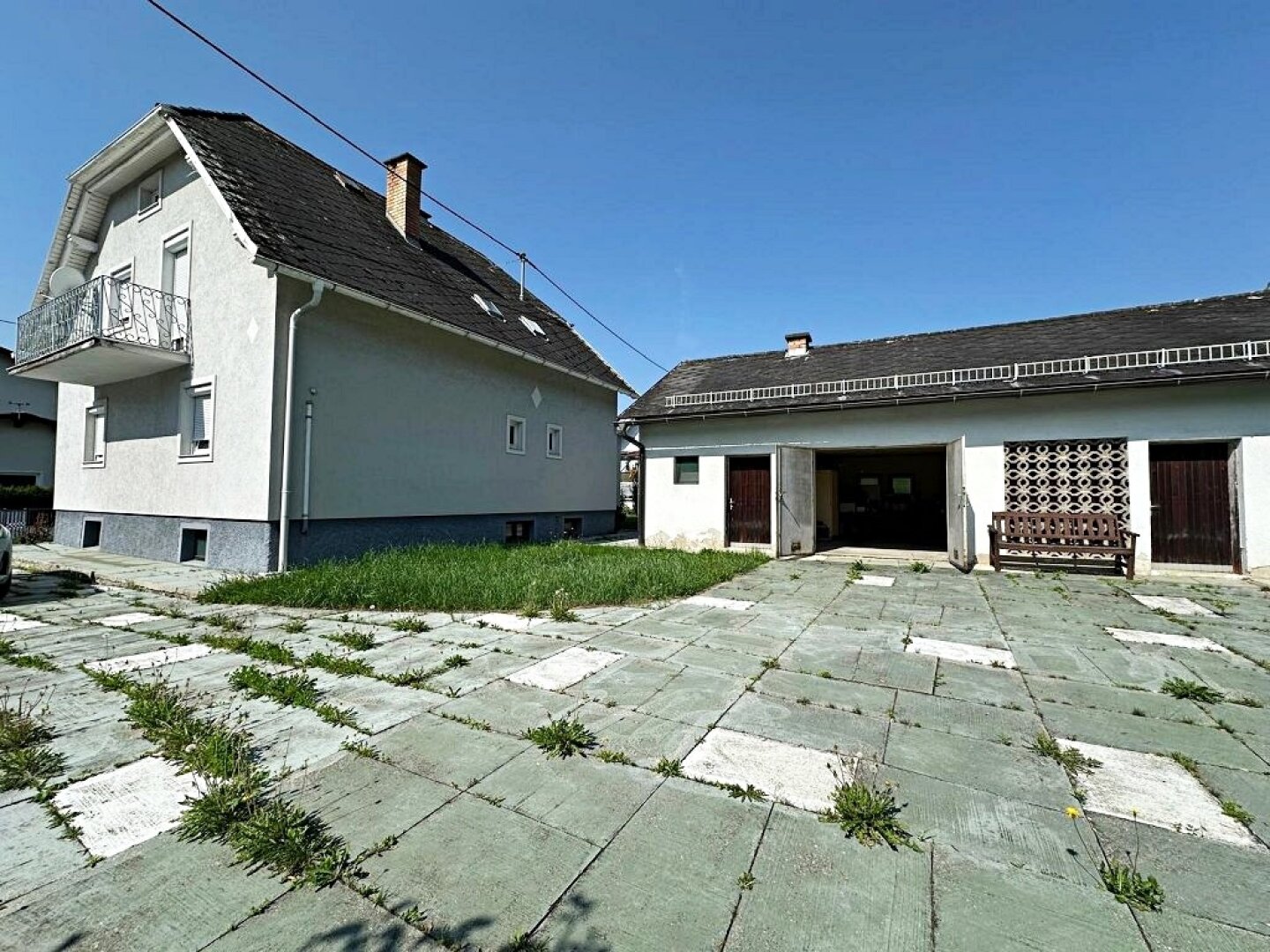 - die Hauseinfahrt ist mit Platten verlegt