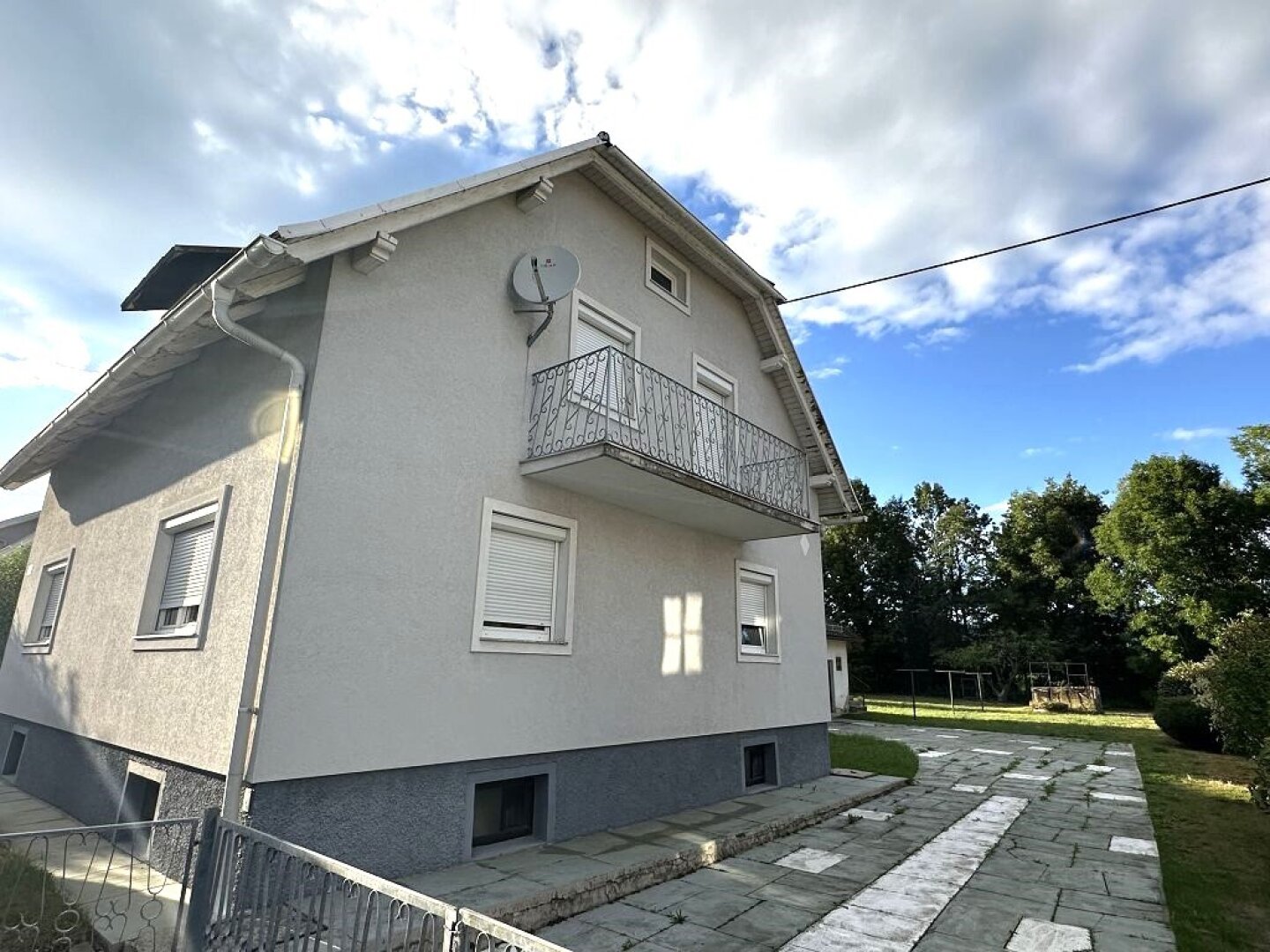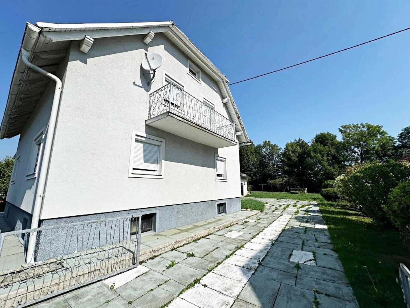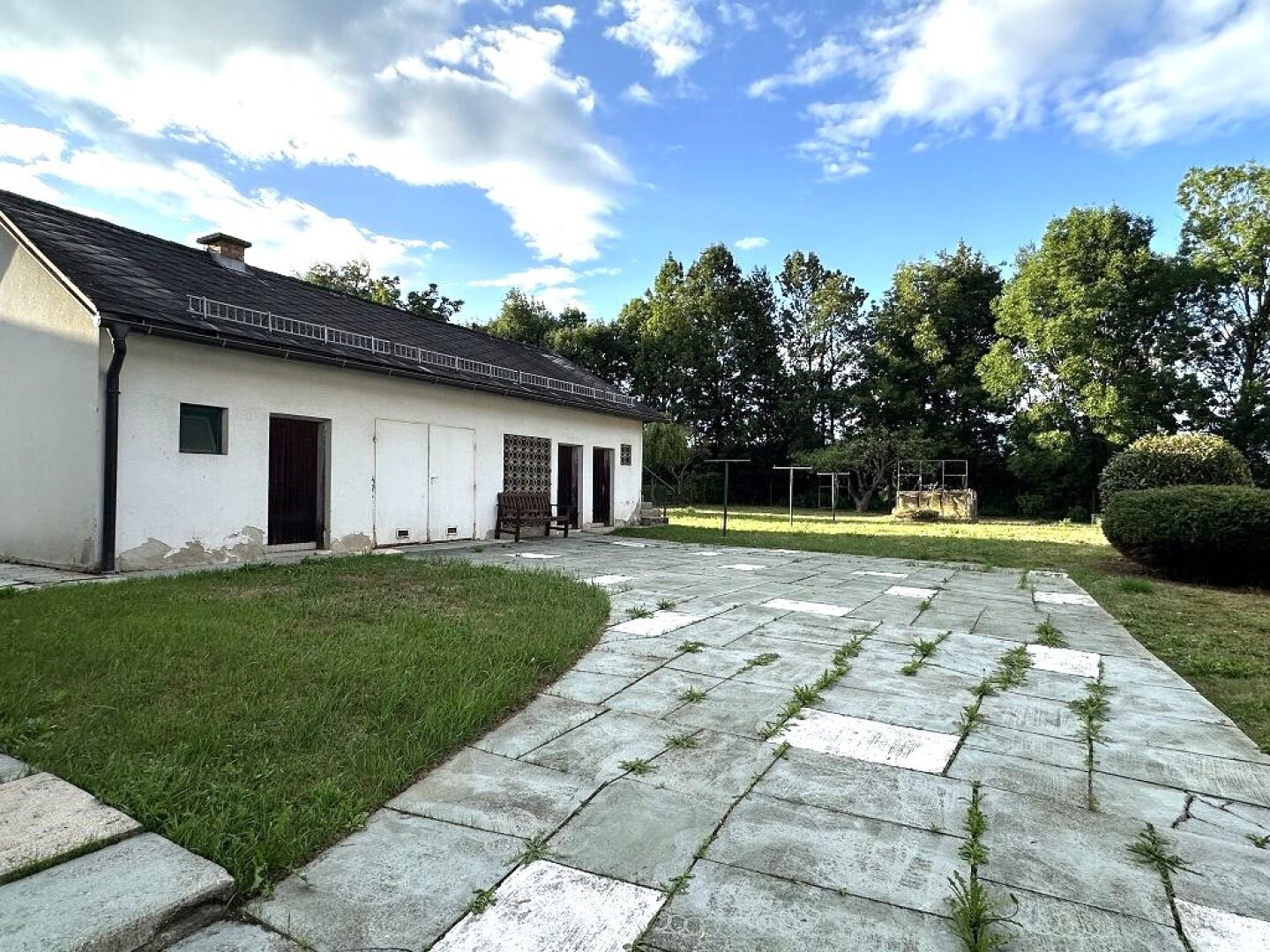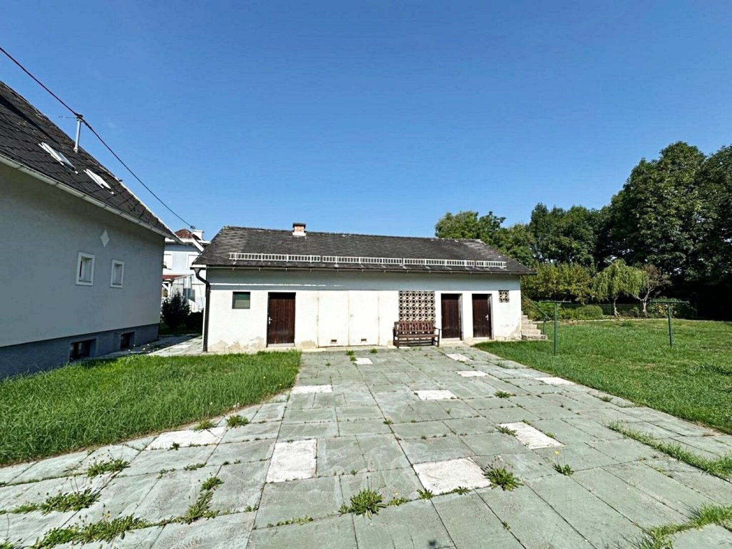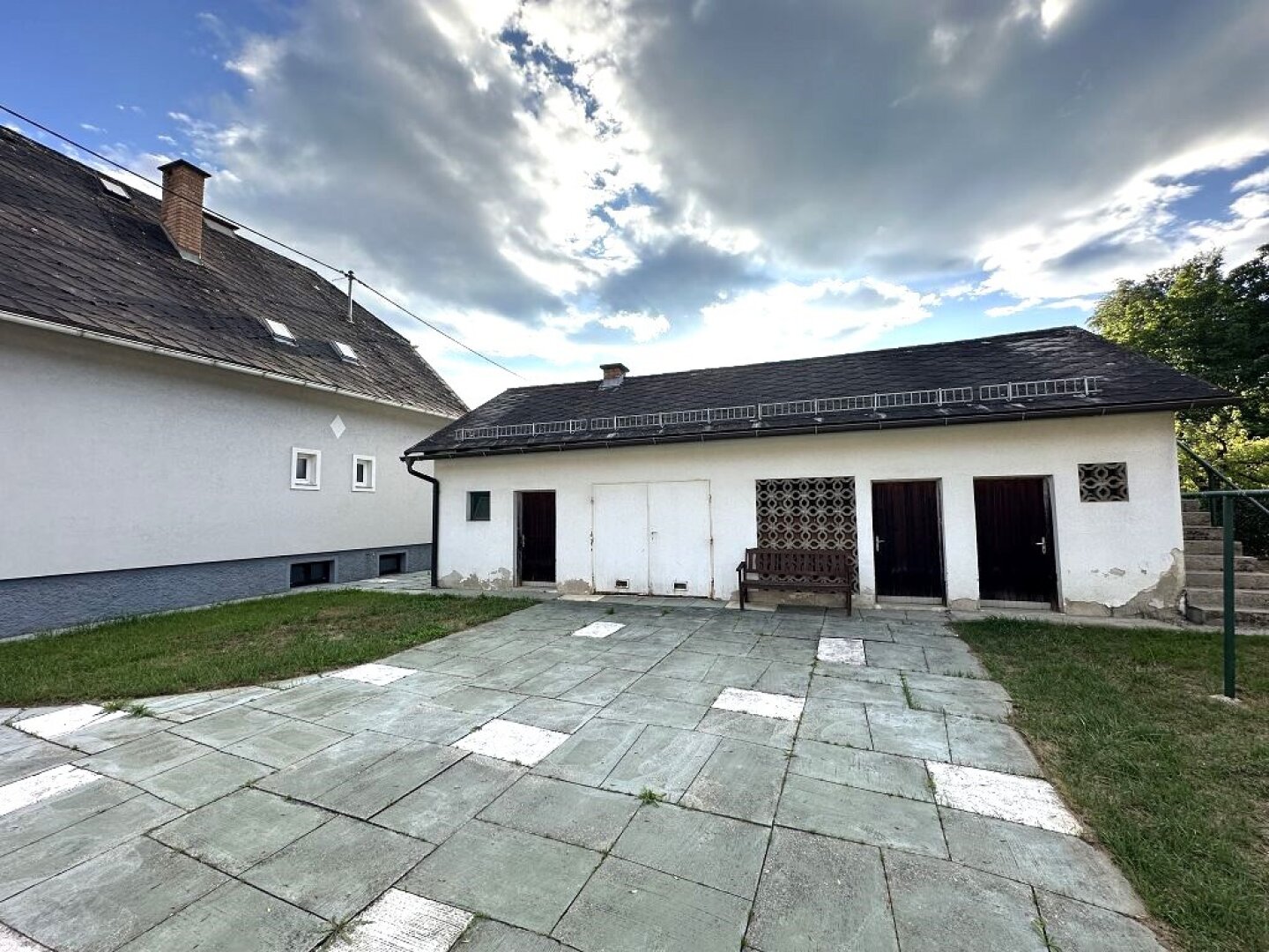 - die Hauseinfahrt ist mit Platten verlegt