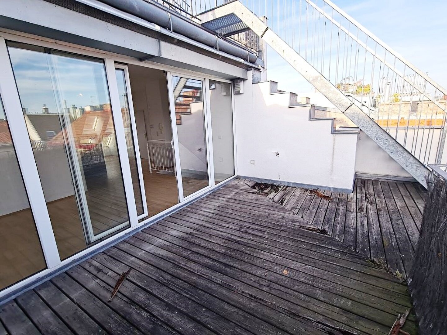 TERRASSENHIT, DACHGESCHOSS, 138 m2 Maisonette mit 45 m2 Terrasse, 3 Zimmer, Wohnküche, Wannenbad, Rembrandtstraße