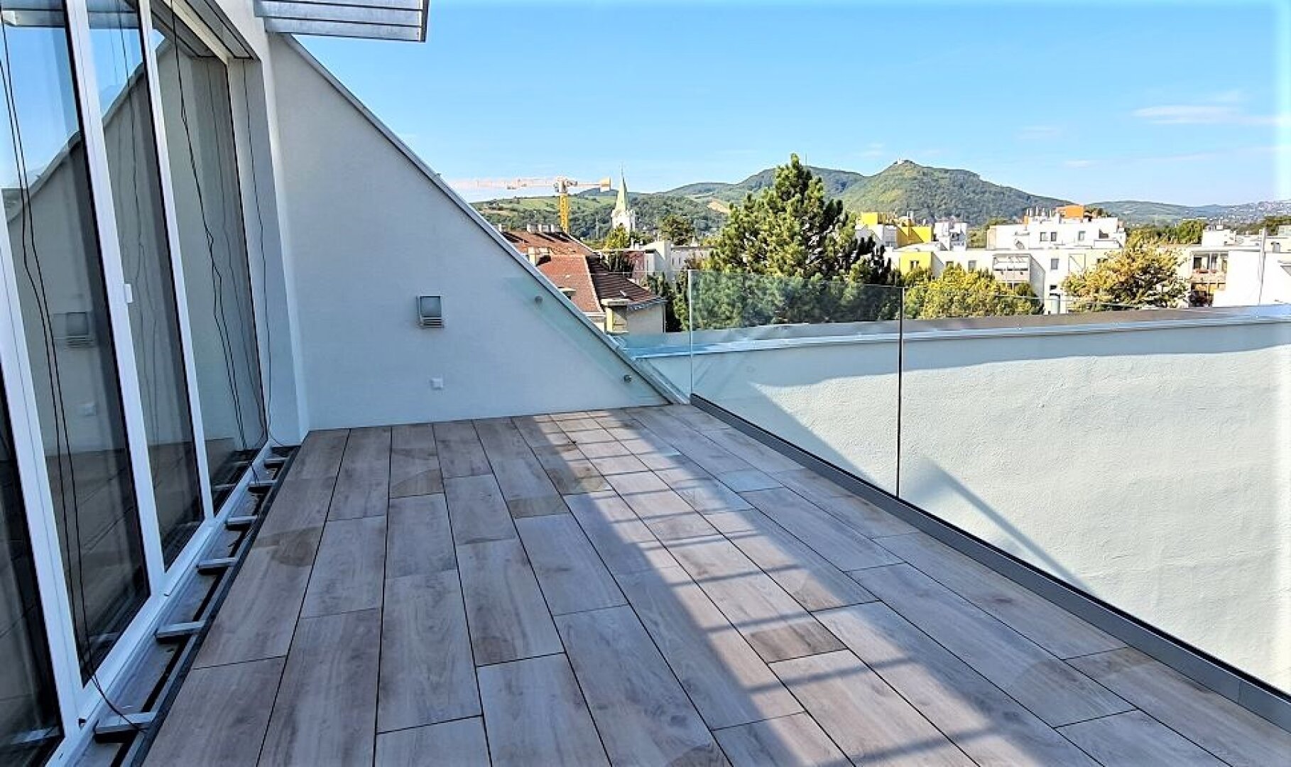 TERRASSENHIT, FERNBLICK, klimatisiertes 37 m2 Dachgeschoß mit 23 m2 Terrasse, 1 Zimmer, Komplettküche, Duschbad, Anton-Bosch-Gasse
