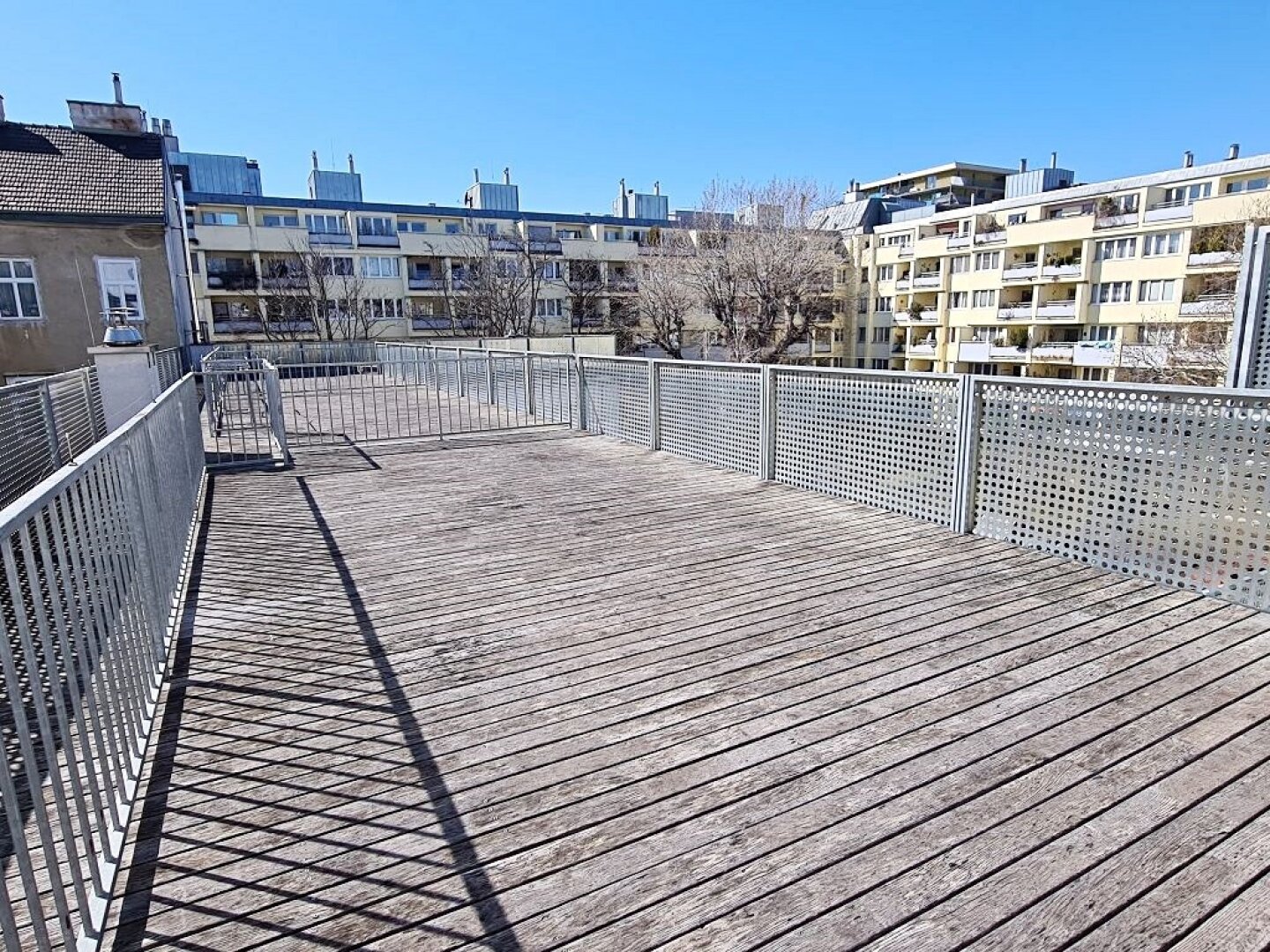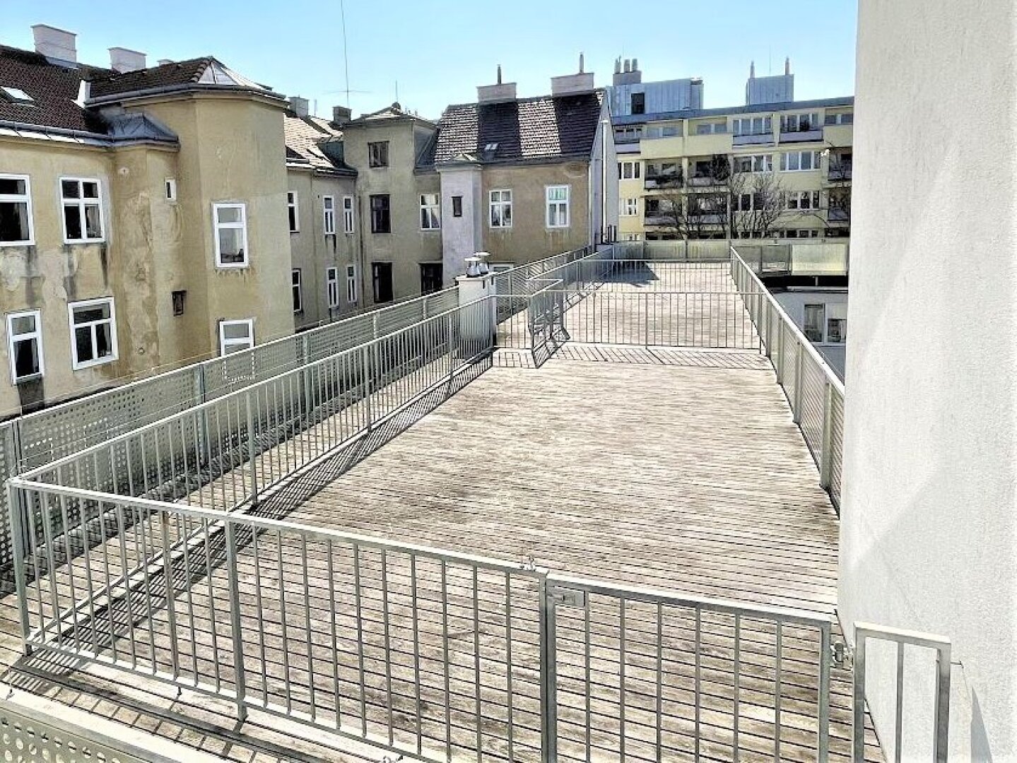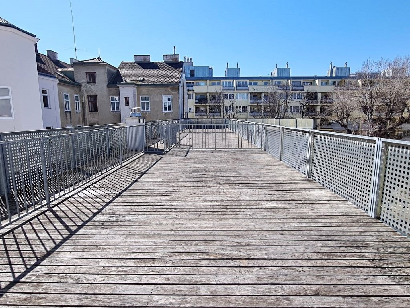 TERRASSENHIT, U3-Nähe, gepflegte 61 m2 Neubau mit 45 m2 Terrasse, 2 Zimmer, Einbauküche, Wannenbad, 3. Liftstock, Lorystraße