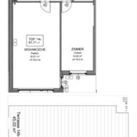 Vorzimmer, Wohnküche, Schlafzimmer, Badezimmer, separates WC, ca. 45,02 m2 Terrasse und Kellerabteil