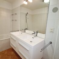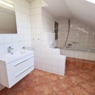 + Badezimmer mit Badewanne, Doppelwaschtisch, Waschmaschinenanschluss und WC