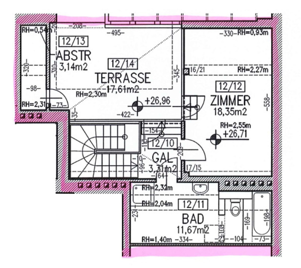 2. DG: Galerie, 1 Zimmer, ca. 18 m2 Terrasse, Badezimmer, Abstellraum