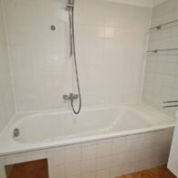 + Badezimmer mit Badewanne, Dusche, Waschtisch, WC