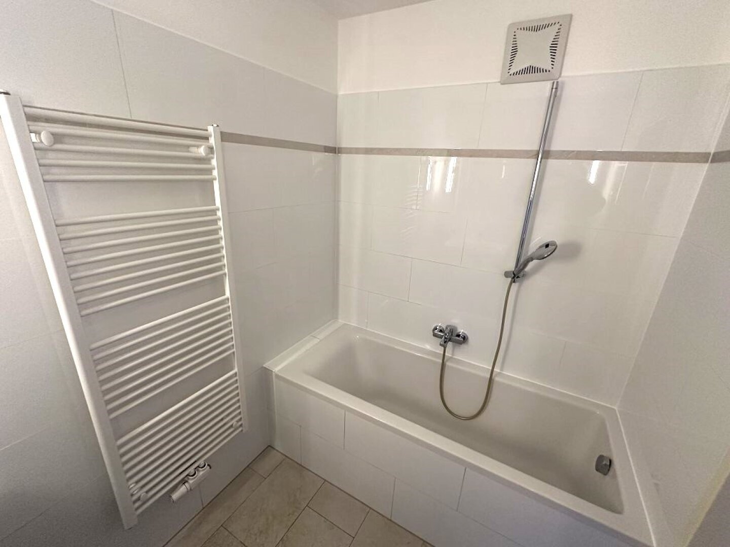 + Badezimmer mit Badewanne, Doppelwaschtisch und Sprossenheizkörper