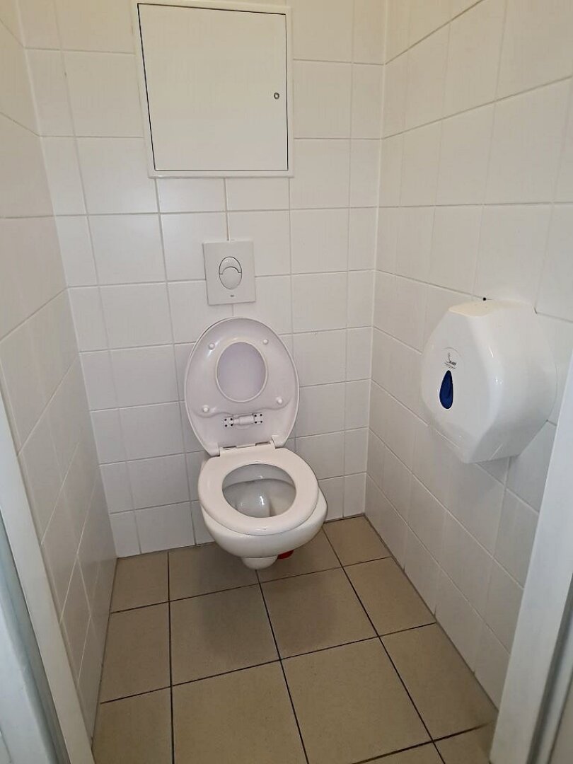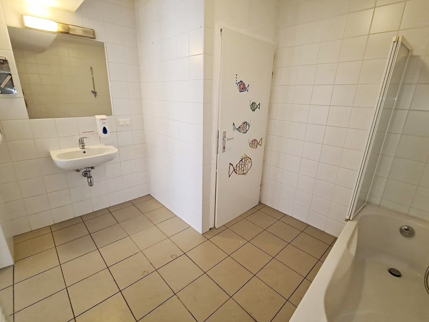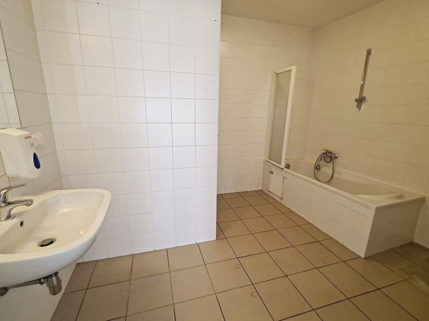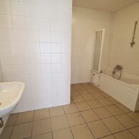 + Badezimmer mit Badewanne, Waschtisch, WC und Waschmaschinenanschluss