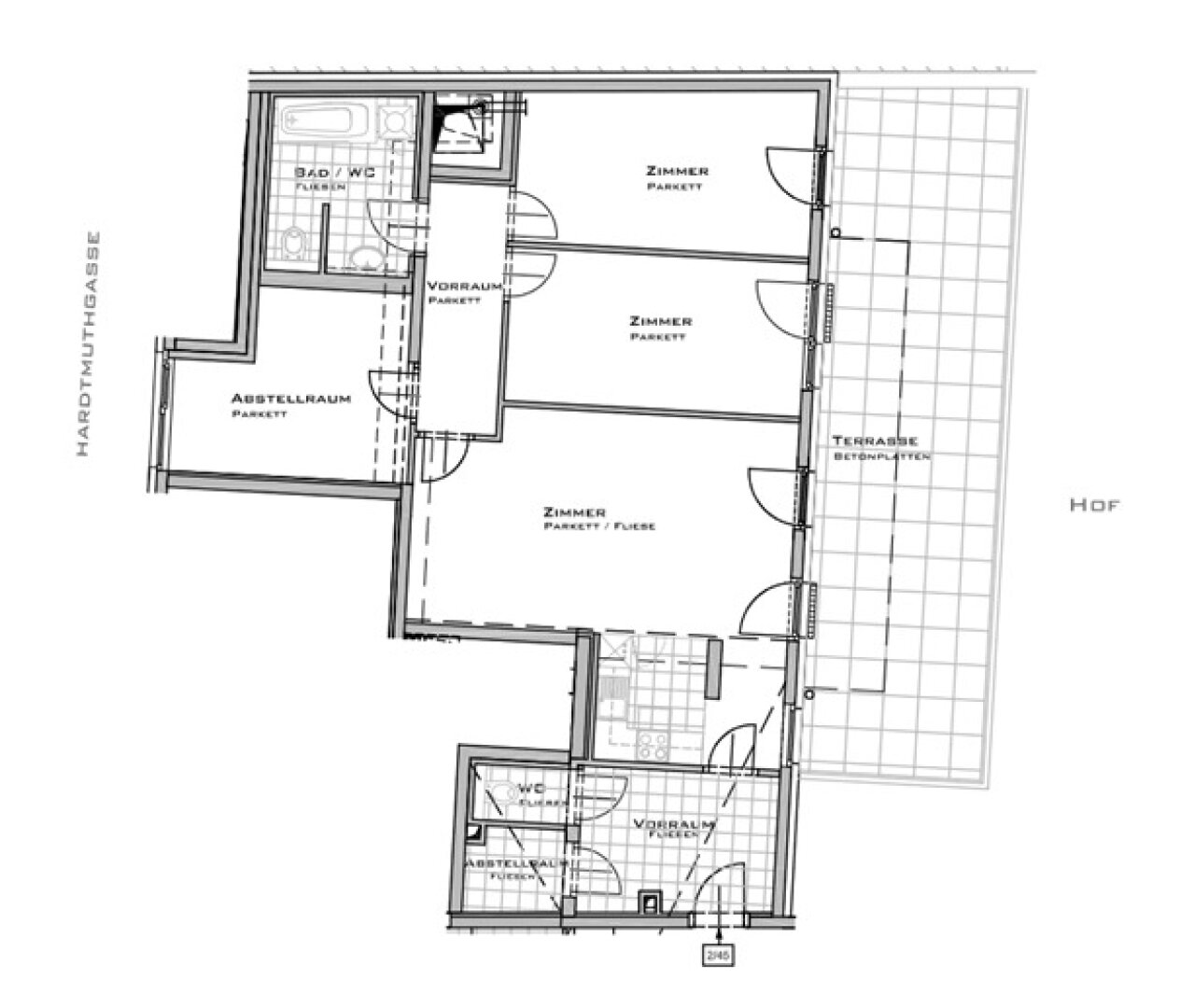 IN DER HARTMUTHGASSE GELANGT DIESE CA. 105,94 m2 GEWERBEFLÄCHE MIT CA. 41,20 m2 TERRASSE IM ERDGESCHOSS ZUR UNBEFRISTETEN VERMIETUNG!