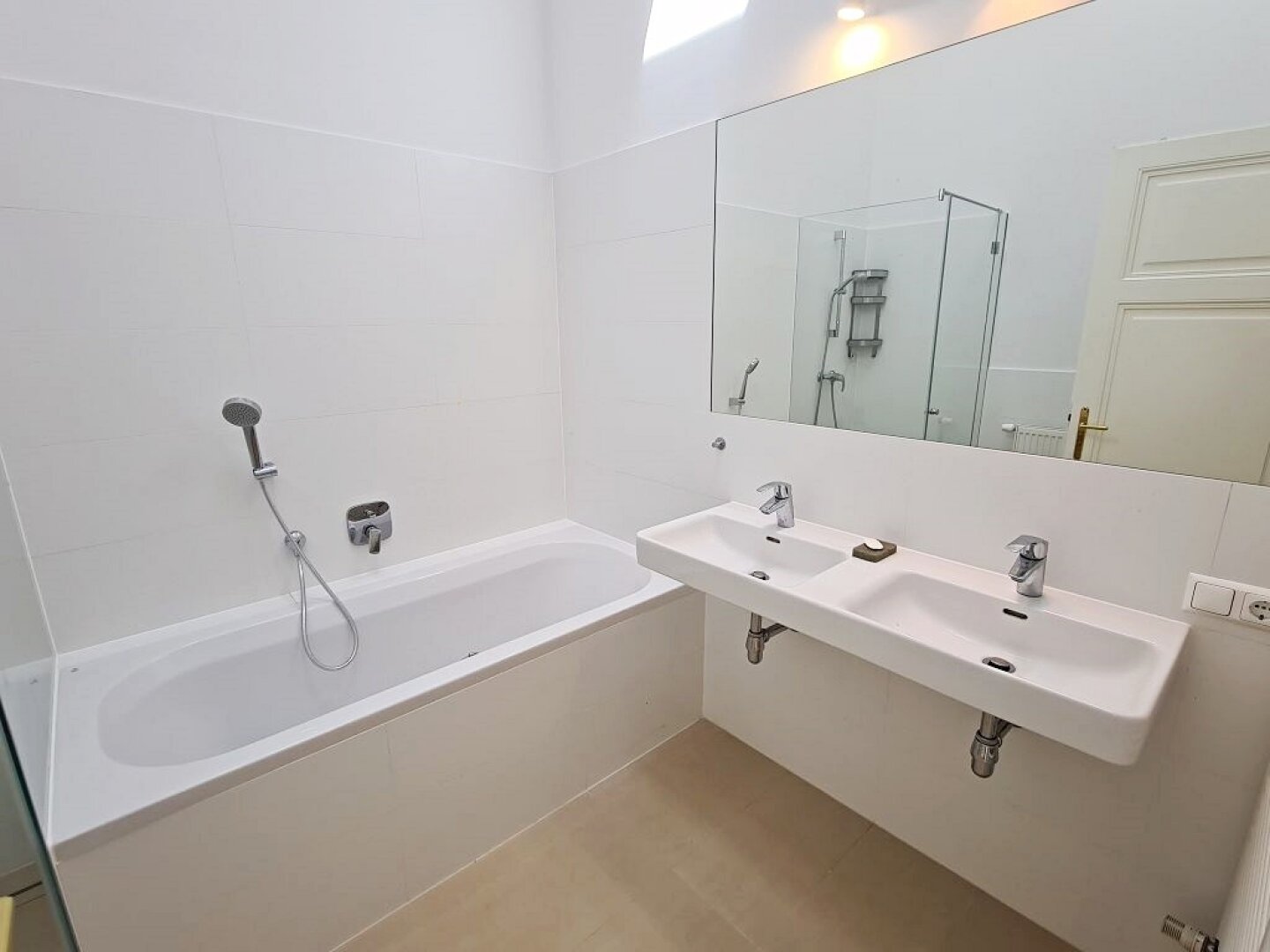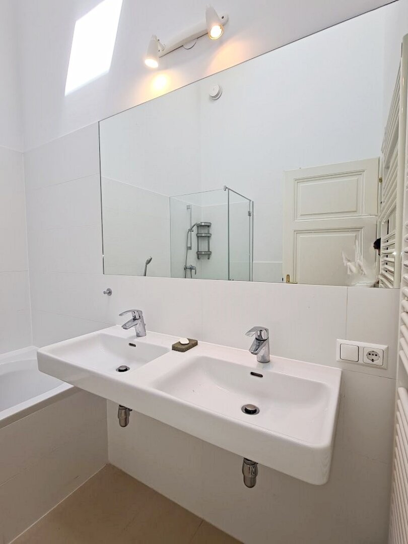 + Badezimmer mit Badewanne, Dusche, Waschtische, Fenster