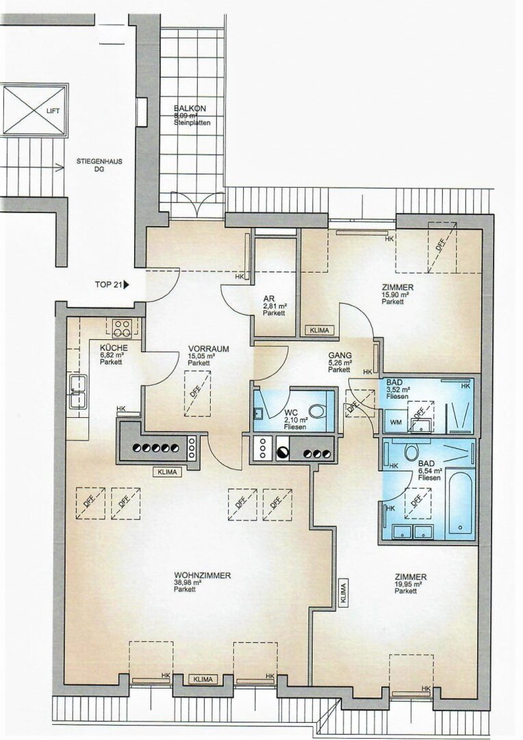Vorzimmer, Wohn-Esszimmer, Küche, ca. 8,27 m2 Terrasse, 2 Schlafzimmer, 2 Badezimmer, separates WC, Abstellraum