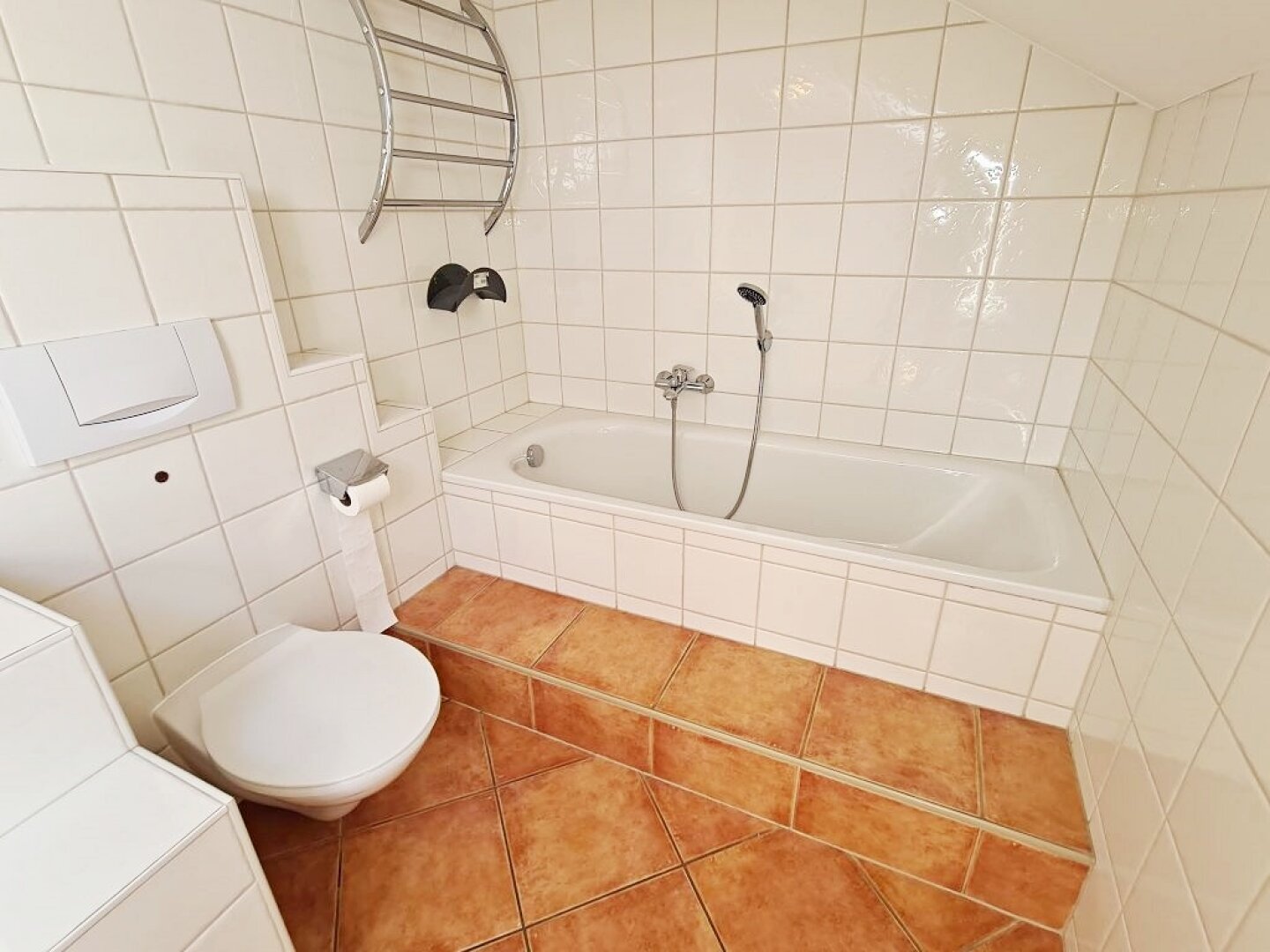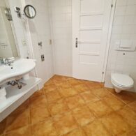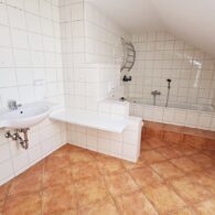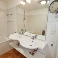 + Badezimmer mit Badewanne, Dusche, Waschtisch, WC