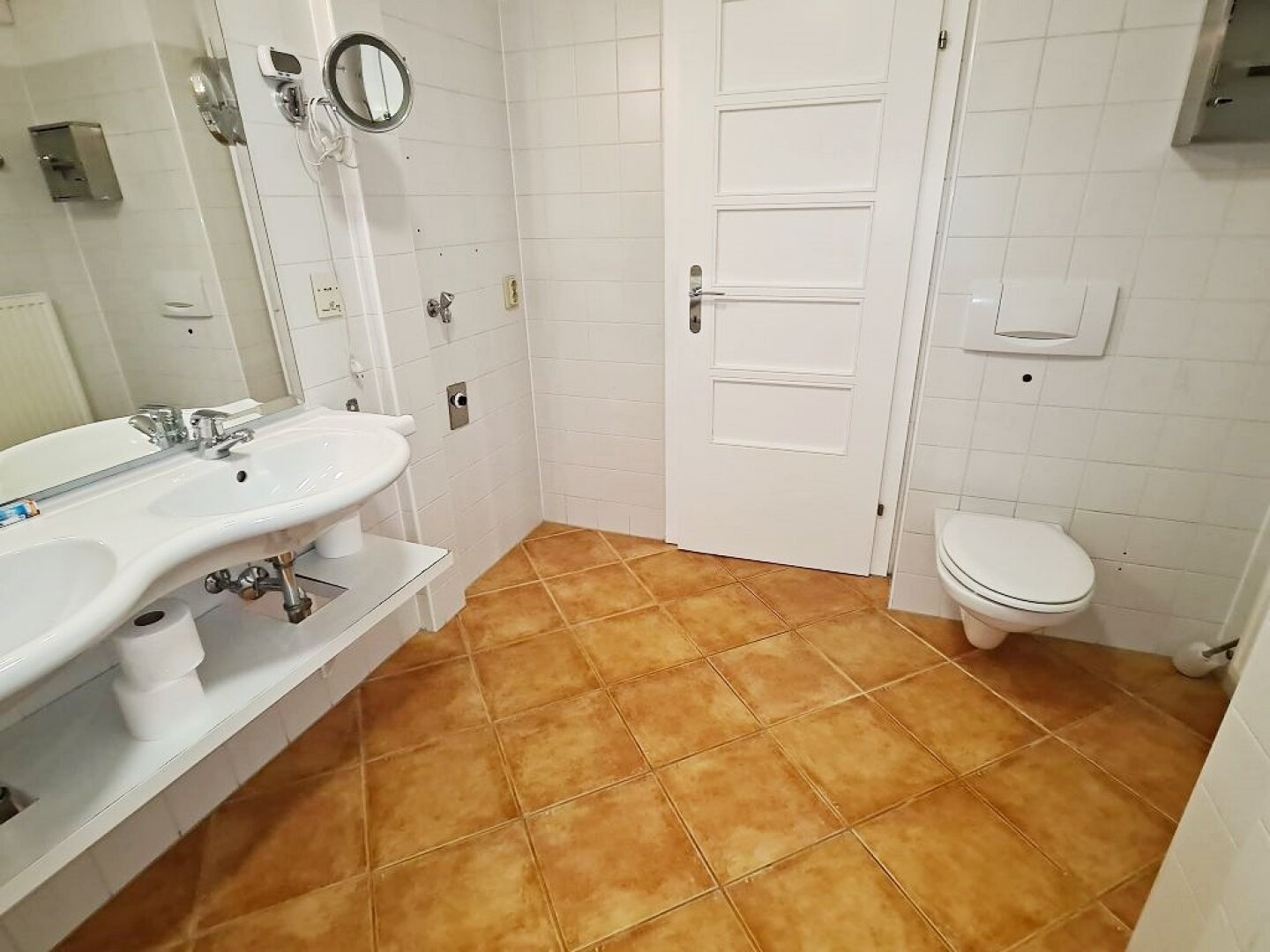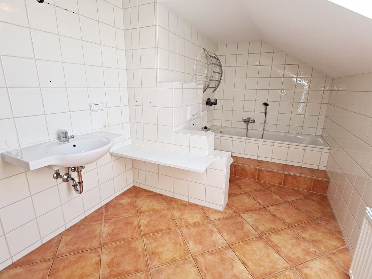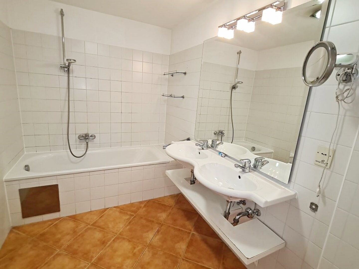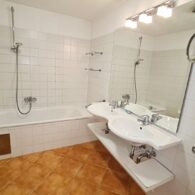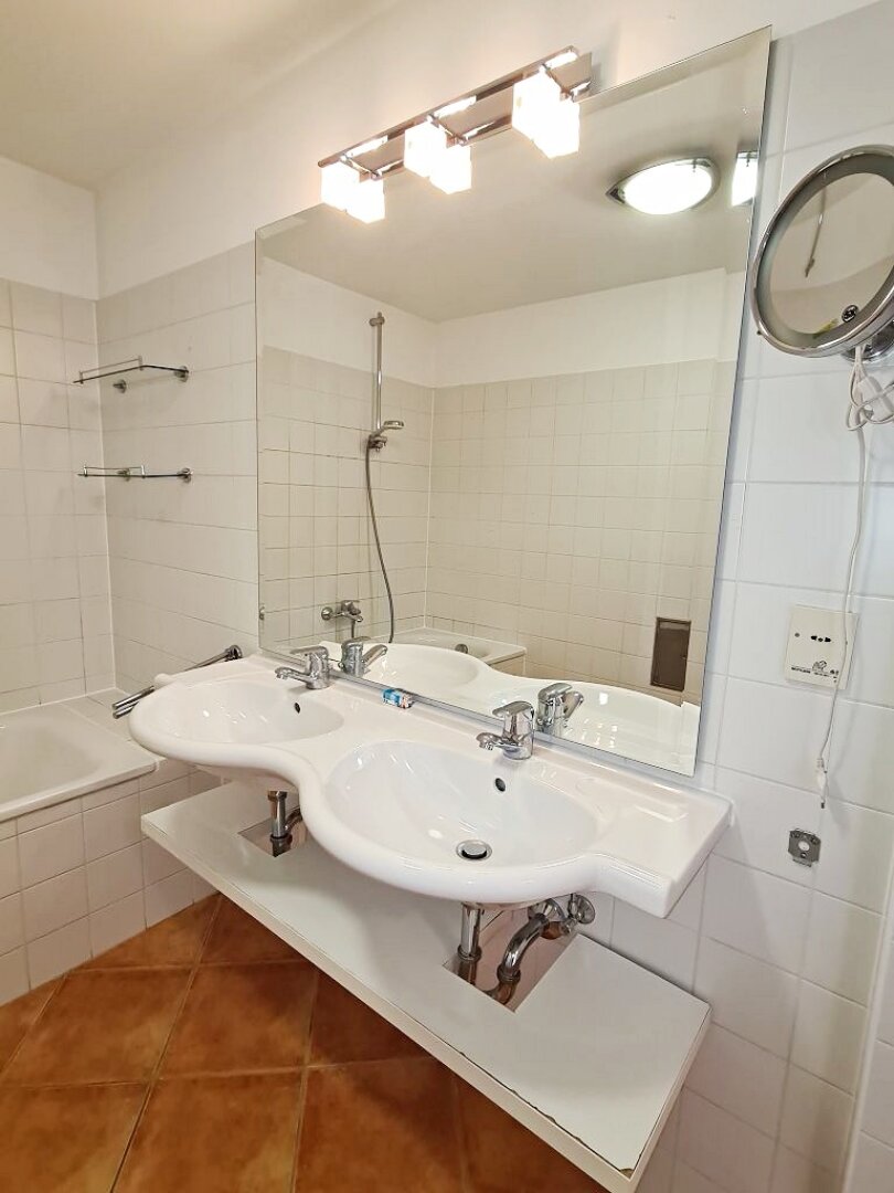 + Badezimmer mit Badewanne, Doppelwaschtisch, Waschmaschinenanschluss und WC