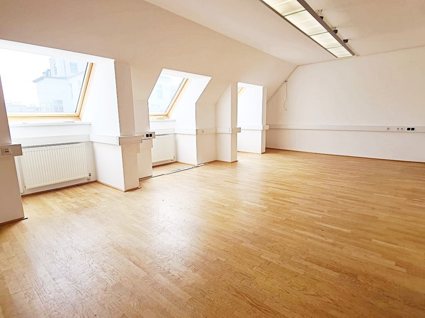 IN DER ZIEGLERGASSE BEI DER FUSSGÄNGERZONE MARIHILFER STRASSE GELANGT DIESE 141 m2 BÜROFLÄCHE IM DACHGESCHOSS ZUR BEFRISTETEN VERMIETUNG!