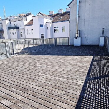 TERRASSENHIT, 61 m2 Dachgeschoß mit 48 m2 Terrasse, Wohnküche, 1 Zimmer, Wannenbad, Parketten, Fernblick, Holbeingasse